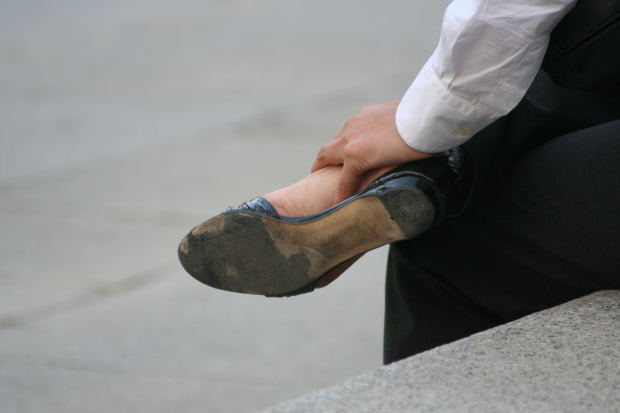 On one of her feet, I noticed an open cut near the top of her blue moccasin. Maybe the blister was from an ill-fitting shoe.