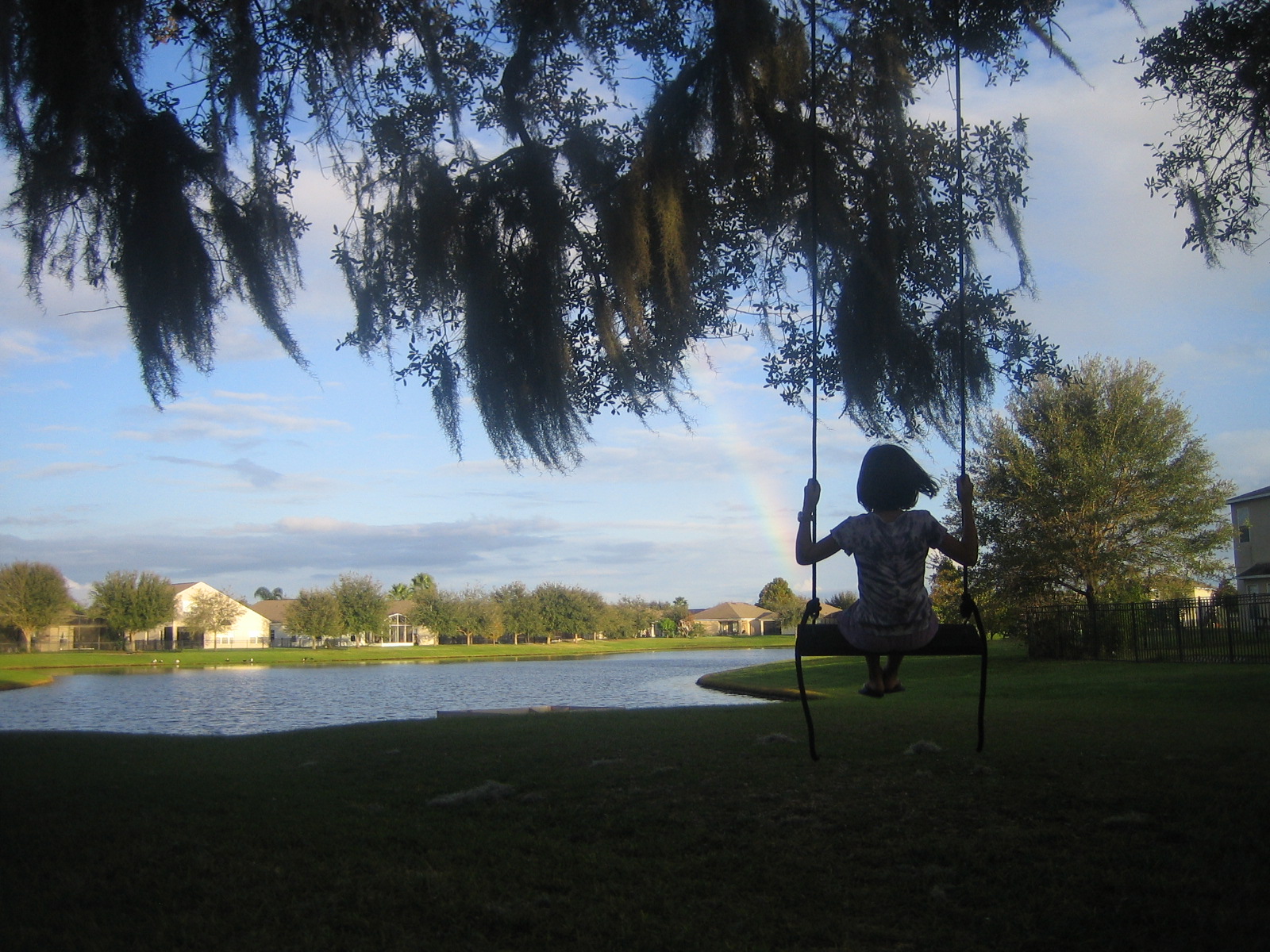Photo credits: photos of girl swinging and boy skipping stones taken by Danielle Wallace; man sledding from Morgue file.com