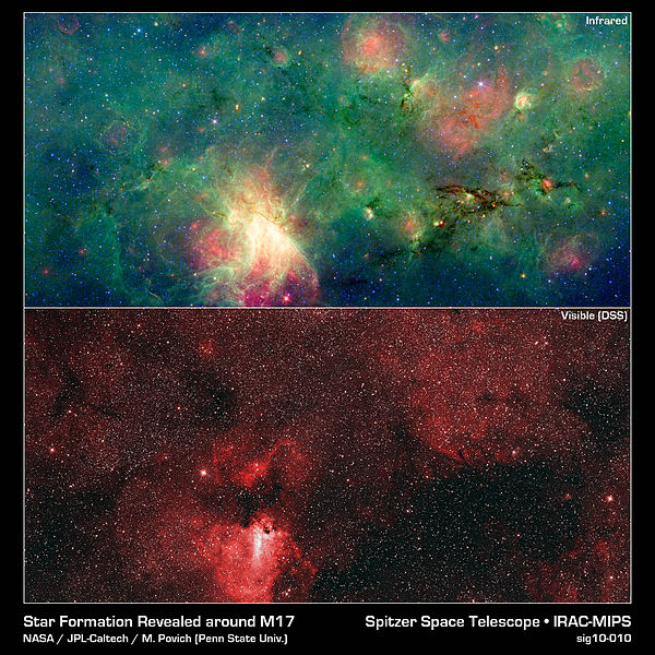 http://commons.wikimedia.org/wiki/File:Star_Formation_Revealed_around_M17.jpg