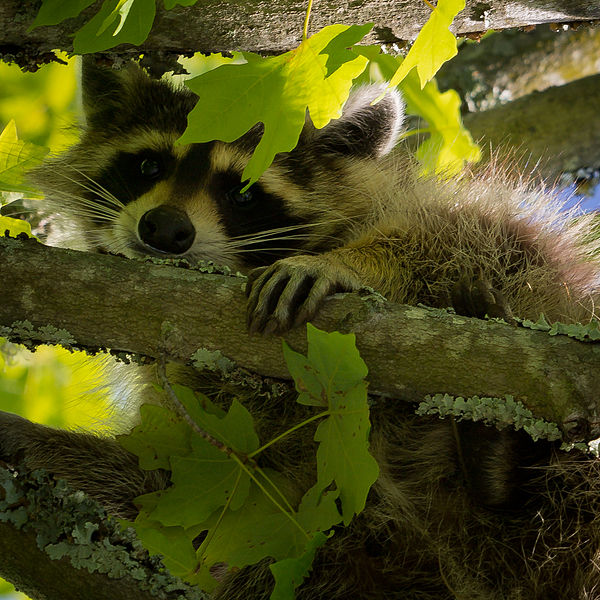 Photo – Raccoon hiding in the branches of a maple tree – taken by Ken Thomas http://upload.wikimedia.org/wikipedia/commons/thumb/8/81/Raccoon-27527-4.jpg/600px-Raccoon-27527-4.jpg