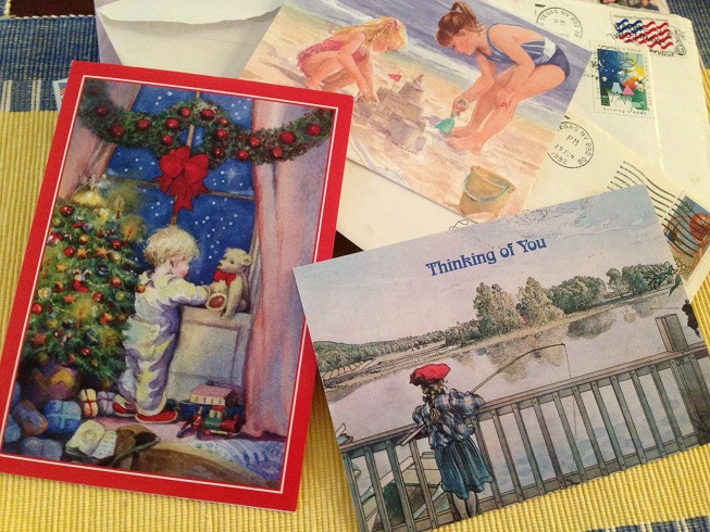 I agree that cryptic emails and texting — even comments on Facebook really can’t come close to the warmth of a letter in the hand, sent through the mail, and with STAMPS!