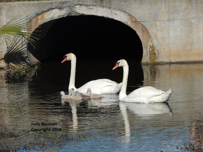 1. Main Photo: Swans and cygnets, photo taken April 2014 by Judy Berman.