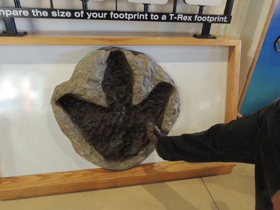 Photo: compare the size of a T-Rex footprint to man’s. Steve Cayer, curator of the Museum of Dinosaurs and Ancient Cultures, Cocoa Beach, Florida.