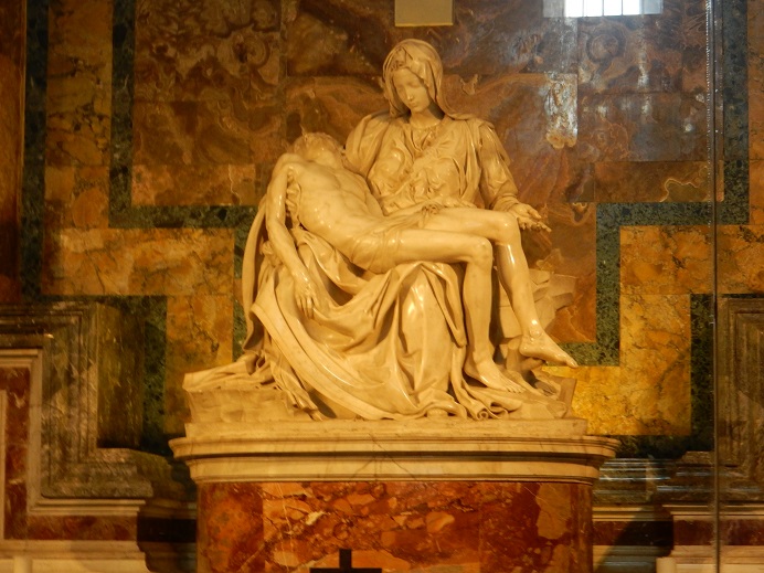 In the summer of 1970, my parents fulfilled a dream to take our family to Europe before my brother started his job after college and I would graduate from college the next year. It was one of those 11-countries-in-37-days kind of whirlwind trips, and the highlight for my mom was visiting Michelangelo’s Pieta. She sat on one of the benches and wrote about it in her notebook, then came back later and sat and studied it even more. The it was “attacked” as she called it, she was devastated, and she couldn’t understand what could make a person do that.